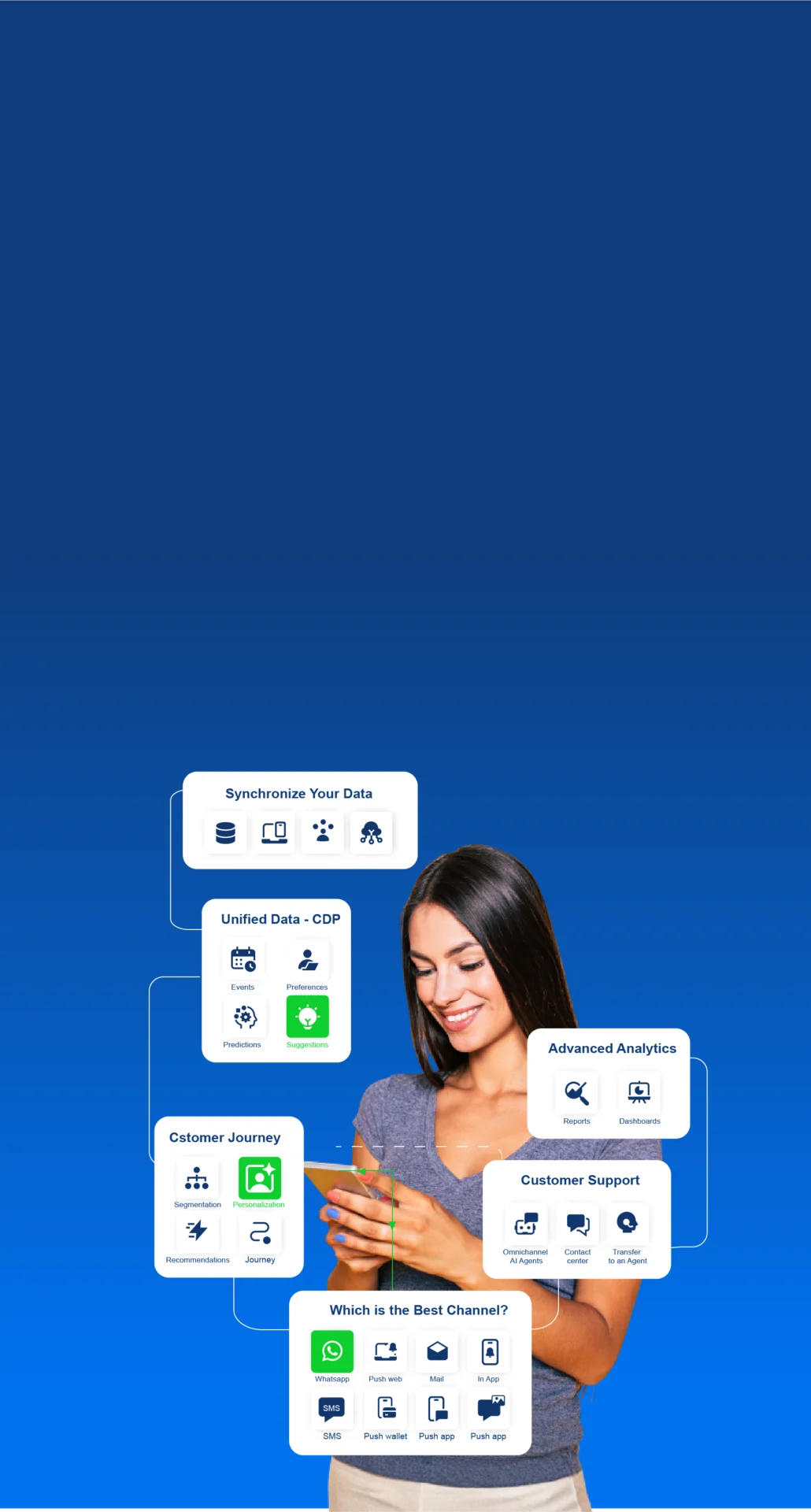 Our customer journey platform empowers you to connect with your customers across channels. From first touch to support and advocacy.